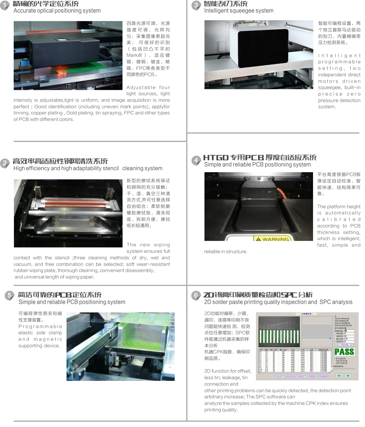 ● 高分辨率的視覺處理,高精度的傳動系統(tǒng),懸浮式自適應刮刀,精確的板定位處理,靈巧的網(wǎng)框夾緊結(jié)構(gòu),兼具準確和高靈活性,除了提供高效,精確的印刷功能外,更為客戶提供突出的高性價比