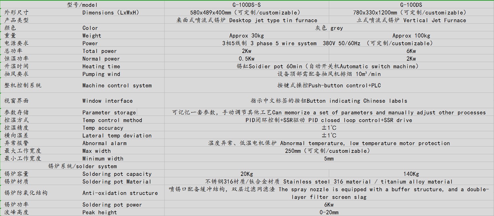 ● 噴錫時間、錫爐尺寸、噴錫高度等等都可根據(jù)客戶要求定制