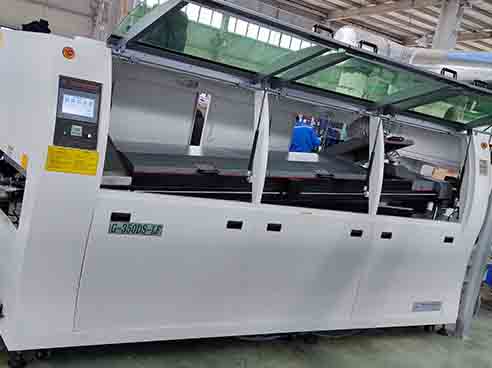 波峰焊設(shè)備是指將熔化的軟釬焊料(鉛錫合金),經(jīng)電動泵或電磁泵噴流成設(shè)計(jì)要求的焊料波,使預(yù)先裝有元器件的印制板通過焊料波,實(shí)現(xiàn)元器件焊端或引腳與印制板焊盤間機(jī)械與電氣連接的軟釬焊。波峰焊機(jī)主要是由運(yùn)輸帶,助焊劑添加區(qū),預(yù)熱區(qū)和波錫爐組成。
