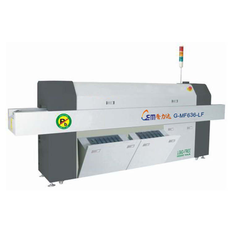 2、在回流焊爐中傳送帶在周而復使傳送產(chǎn)品進行回流焊的同時,也成為一個散熱系統(tǒng),此外在加熱部分的邊緣與中心散熱條件不同,邊緣一般溫度偏低,爐內(nèi)除各溫區(qū)溫度要求不同外,同一載面的溫度也差異。