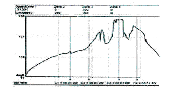 圖8所示溫度曲線,曲線出現(xiàn)明顯抖動,曲線如鋸齒狀,這通常是由于用來測試溫度的熱電耦出現(xiàn)故障。