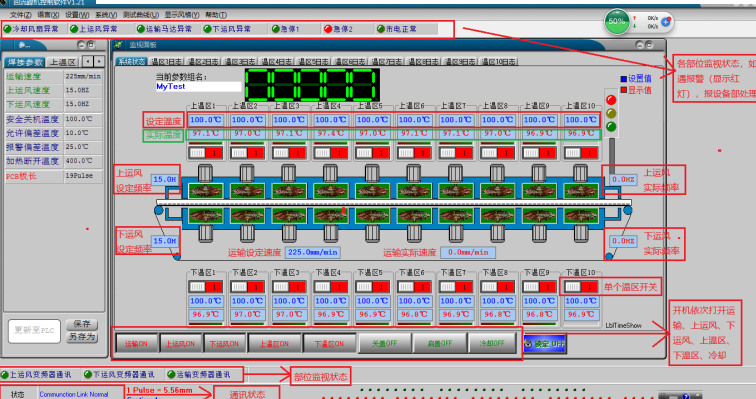 ?。?/span>4)爐溫參數(shù)設(shè)置:檢查系統(tǒng)畫面參數(shù)與設(shè)置是否相符,參數(shù)設(shè)定根據(jù)產(chǎn)品調(diào)節(jié)各溫區(qū)溫度;注意修改完參數(shù)以點(diǎn)擊