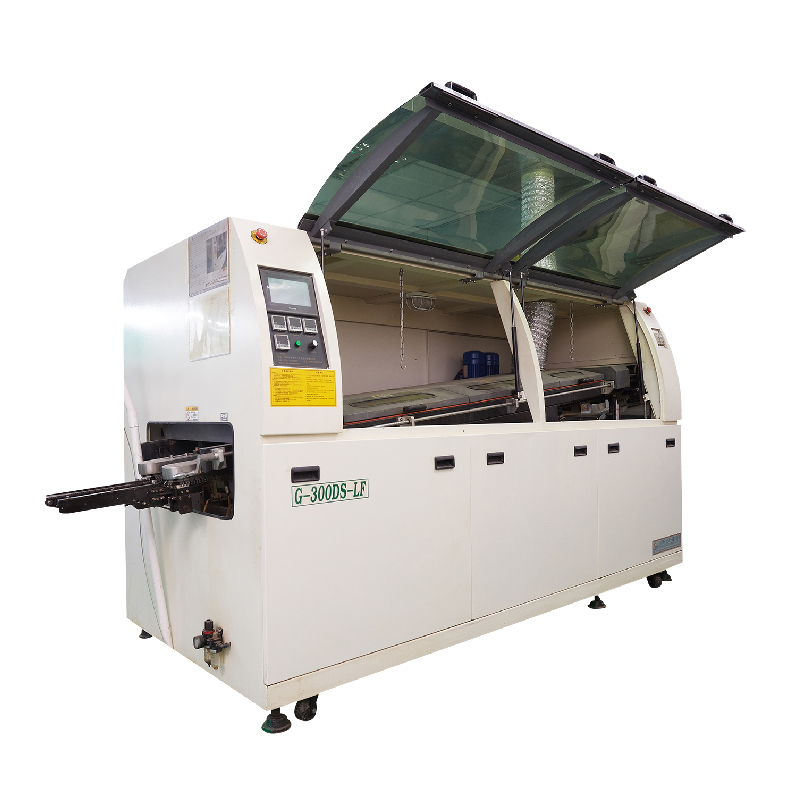 波峰焊錫機(jī)是在泵壓作用下,使液態(tài)焊料表面形成特定形狀的焊料波峰的一種工藝。當(dāng)插入組件以固定角度通過焊料波時(shí),焊點(diǎn)形成在銷焊區(qū)域。在鏈?zhǔn)捷斔蜋C(jī)的傳動(dòng)過程中,首先對(duì)焊機(jī)預(yù)熱區(qū)的部件進(jìn)行預(yù)熱(部件的預(yù)熱和溫度仍由預(yù)定的溫度曲線控制)。波峰焊錫機(jī)在實(shí)際焊接中,通??刂茦?gòu)件表面的預(yù)熱溫度,因此很多設(shè)備都增加了相應(yīng)的溫度檢測(cè)裝置(如紅外探測(cè)器)。預(yù)熱后,元件進(jìn)入鉛槽進(jìn)行焊接。熔池中有熔化的液體焊料。鋼浴底部的噴嘴將設(shè)置熔融焊料的波形,以便當(dāng)部件的焊接表面通過波形時(shí),它將被焊料的波形加熱。同時(shí),波峰焊錫機(jī)焊料的波形也會(huì)潤(rùn)濕焊接區(qū)域,擴(kuò)大填充范圍,最終實(shí)現(xiàn)焊接過程。如何選購(gòu)波峰焊?