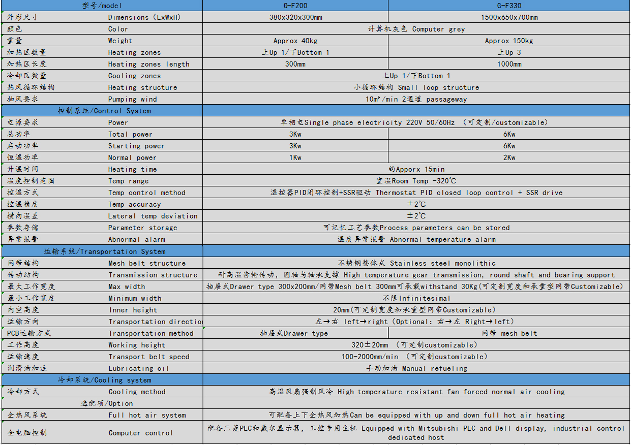 4、相鄰溫區(qū)差別MAX可達100℃,不串溫,每個溫區(qū)之溫度和熱風風速獨立可調(diào)節(jié),運輸采用變頻控制、濕度控制精度可達±10mm/min,特別適合 BGA/CSP及0201等焊接